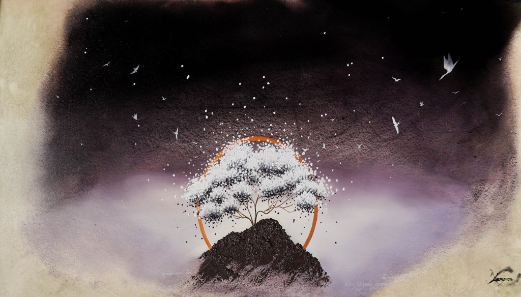 On her canvases, science and nature meet — neural dendrites, blood arborescences and the breath of the living world can be found within. Her art is also an environmental gesture: she plants 11 trees for every artwork sold and donates 3% of her revenue to wildlife protection organizations.
